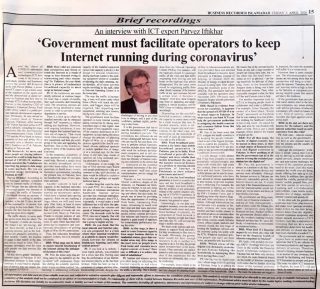 Business Recorder Interview: Government must facilitate operators to keep Internet running during coronavirus’ 03 April 2020