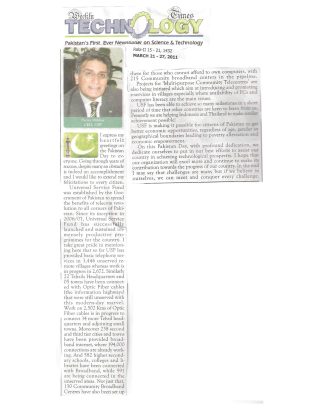August 15,2010 On this 63rd Independence Day of Pakistan I take great pride in stating that, Universal Service Fund (Ministry of IT) continues to provide ICT services to more and more unserved aeras of Pakistan. Please Click Here to continue reading.